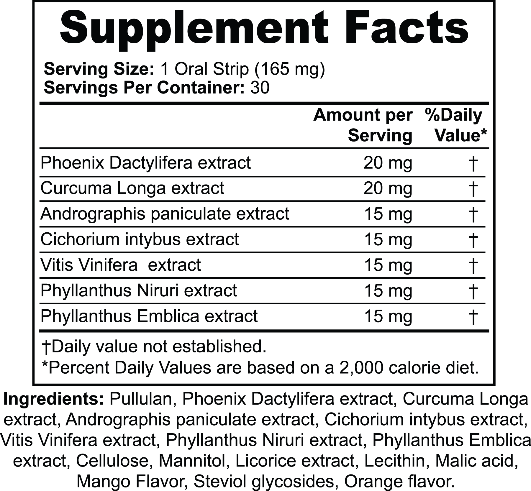 With ingredients like Curcuma Longa (curcumin), Cichorium Intybus, and Phyllanthus Emblica, these oral strips have anti-inflammatory properties that can effectively reduce inflammation caused by alcohol consumption, providing relief from common hangover symptoms.